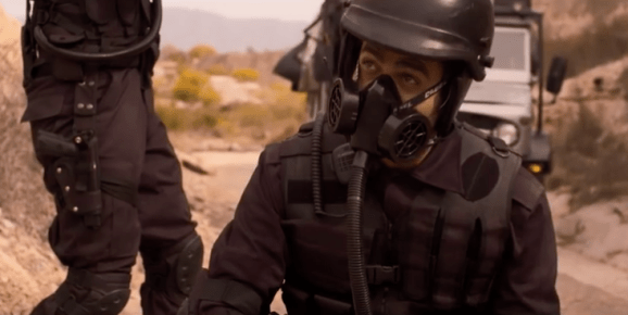 What they saw was a 15-minute short that has a real shot at making waves both on the festival circuit and online when it starts to do the rounds later this year. The premise is simple. It’s 2092. Volcanic gas has rendered the vast majority of Earth uninhabitable. In one of the last surviving Free Zone’s, where oxygen has become the main currency, the government, cartels and rebels fight a seemingly never-ending three-way war for control. When the primary cartel’s leader is captured and the crime rate drops, her sicarios experiment on a local prison engineer, Daniel (played by Andrews’ good friend, Simon Arblaster), and coerce him into doing the unthinkable; breaking out their leader and guiding her through the surrounding toxic wasteland without the aid of traditional breathing apparatus…