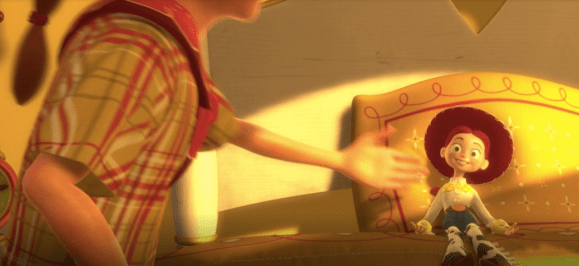 There is no doubt the sequence becomes more emotional the older one gets. For all we remember of our youth, so much more has likely been forgotten. Jessie is part of the latter, and although she laments that toys do not forget kids like Emily or Andy, the flashback deliberately cuts around Emily’s face, keeping the focus on Jessie. It is her memory, but to us it is obstructed, either because Jessie herself is unwillingly forgetting due to the length of time the two have been apart, or because her clearest memories are now too painful to experience up close.